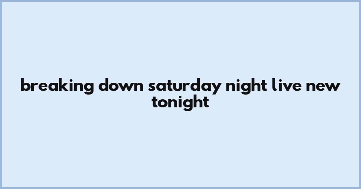 Breaking Down Saturday Night Live New Tonight