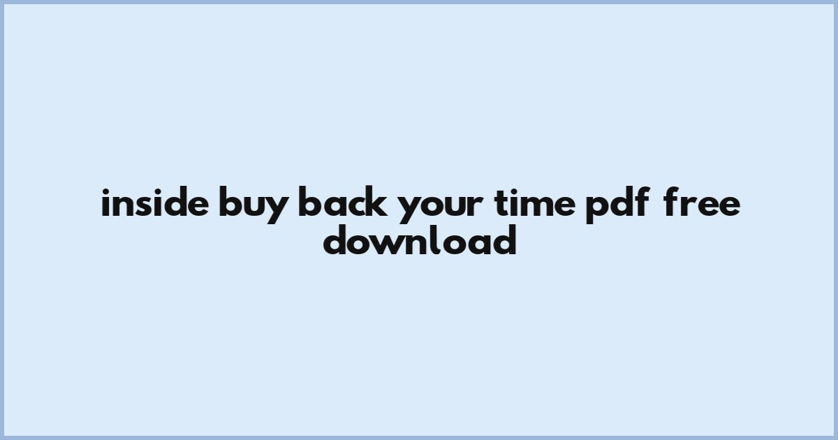 Inside Buy Back Your Time Pdf Free Download