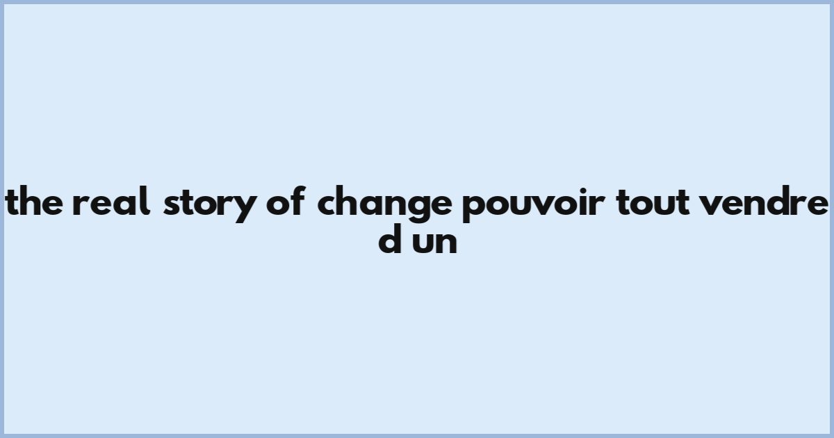 The Real Story Of [CHANGE] Pouvoir Tout Vendre D'un