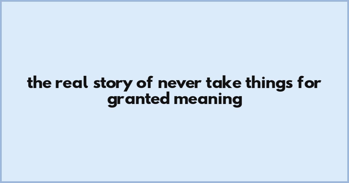 The Real Story Of Never Take Things For Granted Meaning
